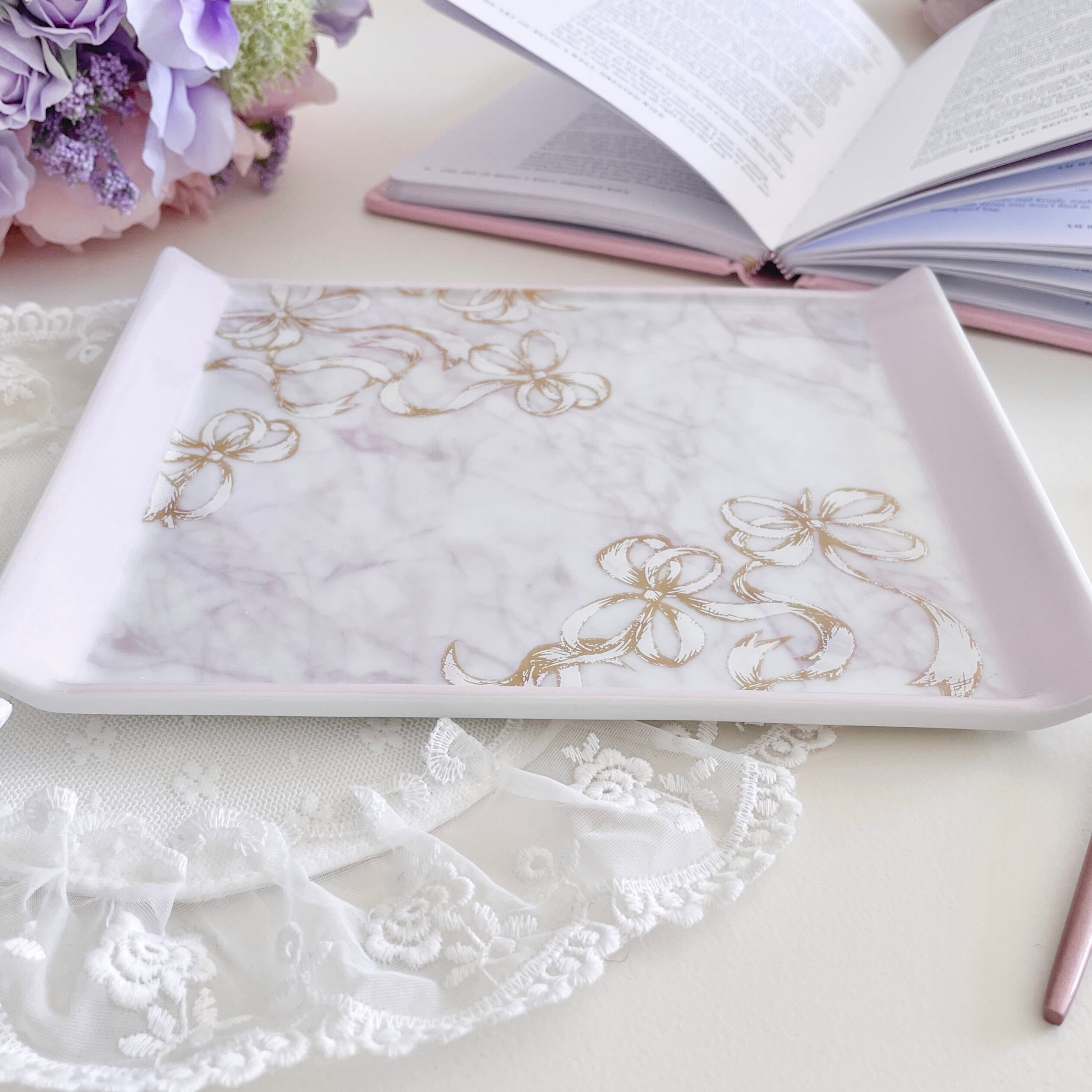 スタイリッシュでキュートなmarble and ribbonプレート♡
